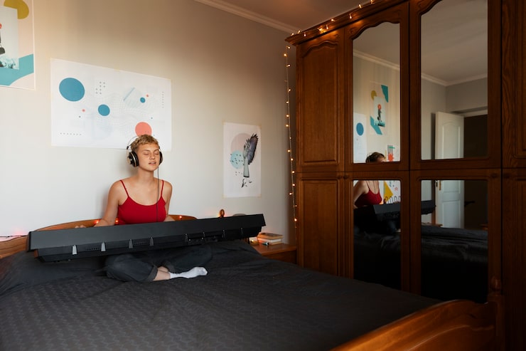 Лампа в комнате, кстати, напоминает ту же девичью пышную юбочку, создавая впечатление, будто она пошита из мягкого фатина.