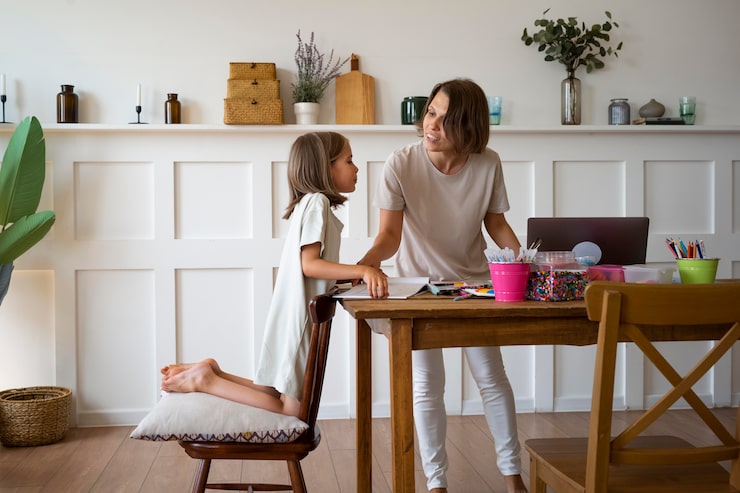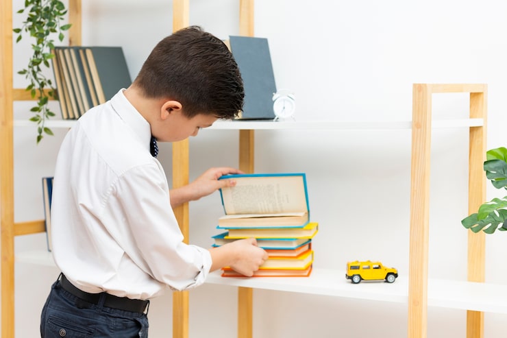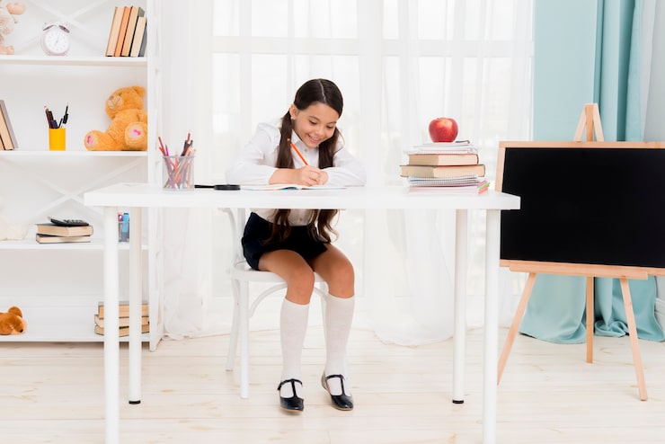 При выборе места для занятий школьнику необходимо обеспечить достаточное освещение. Лучше всего выделить для него самый светлый уголок в комнате, расположенный рядом с окном. Однако стол не следует размещать напротив окна, оптимальнее – сбоку, так как прямой и интенсивный свет, попадающий в глаза, может быть вреден для здоровья. Важно учитывать, что для правшей свет должен падать с левой стороны, а для левшей – с правой. Для обеспечения комфортного освещения учебной зоны рекомендуется использовать дополнительные источники света, которые ребенок сможет легко регулировать, например, мобильные лампы или светильники с регулятором яркости.