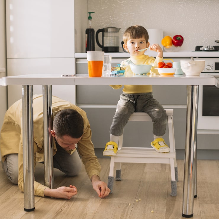 В помещениях с ограниченной площадью складная мебель станет отличным решением. Ее можно легко сложить и убрать, освободив место для детских игр и семейного отдыха! Необходимо, чтобы она была изготовлена из натуральных и долговечных материалов, отвечающих требованиям безопасности. Хорошим выбором станут секретеры или навесные столешницы с подпирающей рейкой, которые можно закрепить на стене или другой мебели.