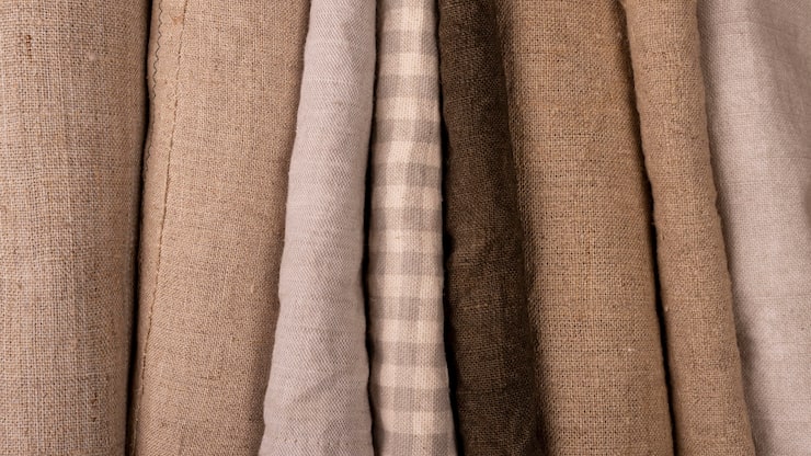TojosШтора из накрахмаленного льна с контрастной отделкой, бежевого цвета, размером 140×220 см