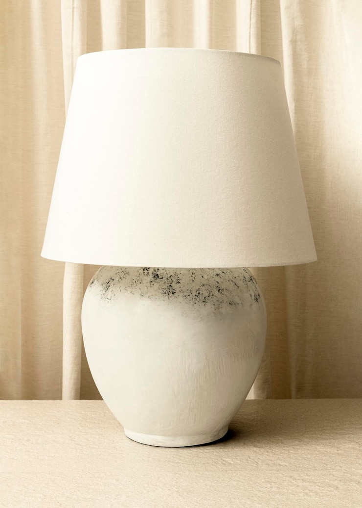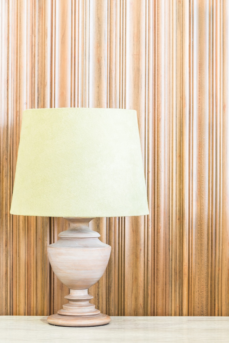 Рекомендуем выбрать лампу с массивным основанием. Например, модель на фотографии, похожая на кувшин, станет отличным решением для нашей трансформации.