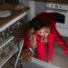 Ключевым элементом дизайна стал высокий шкаф насыщенного зеленого цвета, который не только выполняет свои функции, но и визуально упорядочивает помещение, выступая в качестве акцента на фоне нейтральных стен и дверей. Этот оттенок связывает прихожую с кухней, где также использованы зеленые фасады.