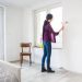 Оттенок шкафа, перешедший к заказчице по наследству от отца, не соответствовал общей цветовой гамме, поэтому его перекрасили в фиолетовый цвет, гармонирующий с цветом одной из стен. Межкомнатную дверь со стороны спальни и потолок также получили такое же покрытие. Стену, расположенную напротив кровати, выкрасили в нежный белый цвет, что позволило создать эффектный контраст.
