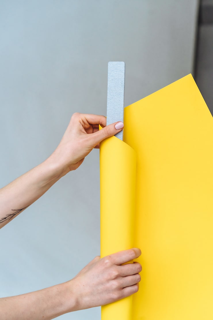 Сотрудникам следует предоставить исчерпывающие данные для определения необходимого объема полотен (периметр, высота, развертки стен или план помещения). Требуется точная схема расположения полотен на чертежах с развертками стен, сведения о ширине каждого полотна, последовательность их наклейки (с какого участка начинать, в каком направлении выполнять работы), а также учет раппорта и мест стыков. При расчете следует избегать вычитания высоты дверных проемов и окон или делать это с особой осторожностью.