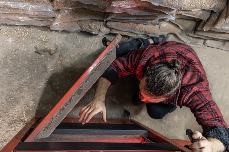 У входа в туалет расположена дверь, раньше открывавшаяся в кухню. Сейчас там маленькая прачечная со стиральной машиной и полками.