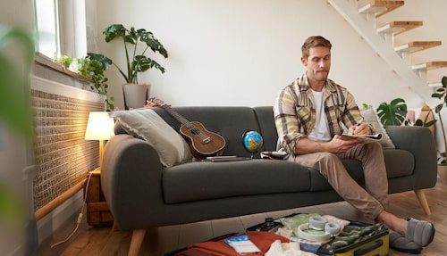 На этих пяти квадратных метрах удалось не только установить все необходимое оборудование, включая плиту с духовкой, посудомоечную машину и холодильник, но и предусмотреть небольшую зону для сидения на подоконнике, а также организовать место для хранения вещей у батареи.