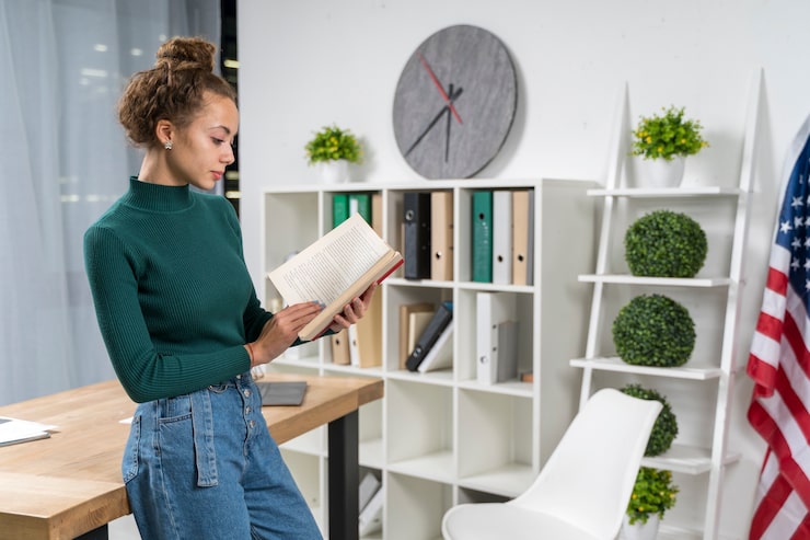 Стеллаж – это один из наиболее универсальных способов организации домашней библиотеки. Он станет подходящим решением как для просторных, так и для компактных квартир. Для размещения стеллажа лучше выбрать дальнюю стену, чтобы книги были видны, но при этом не загромождали полезную площадь комнаты. В небольших квартирах рекомендуется использовать все доступные поверхности, включая пространство над дверями и стены в коридоре. Даже в мансардном помещении можно организовать хранение значительного количества книг, расположив их на полках от пола до потолка.