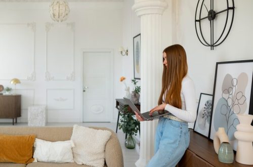 Проходная зона и коридор получились довольно тесными. Входная дверь осталась прежней, но установили панель светло-розового оттенка. Градиентный эффект на стенах был создан с помощью краски — дизайнер выполняла эту работу самостоятельно.