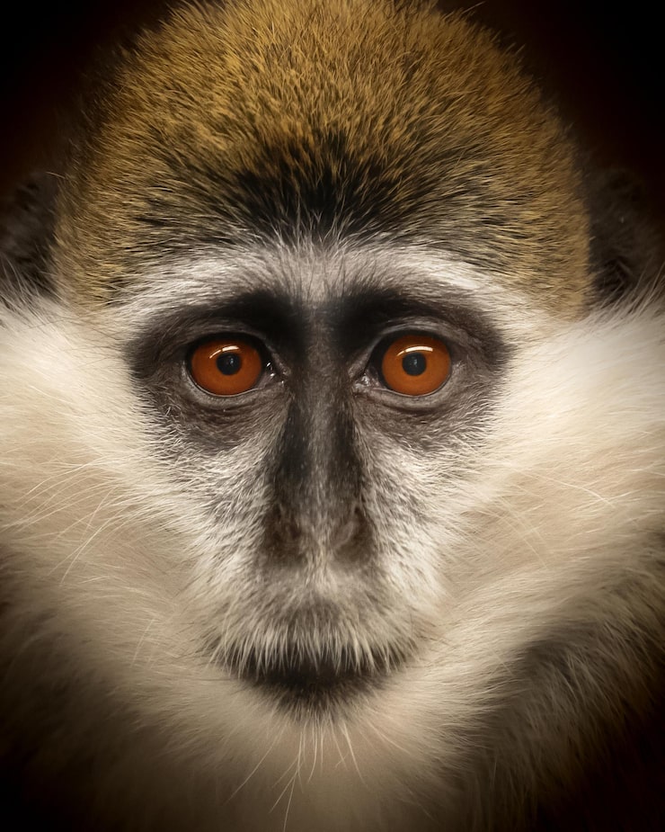 Подвесная картина «Обезьяна» размером 75х100 сантиметров, выполнена в серо-бежевой цветовой гамме