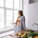 В квартире провели перепланировку, в результате которой кухню объединили с гостиной, обустроили спальню с гардеробной, предусмотрели постирочную и создали совмещенный санузел.
