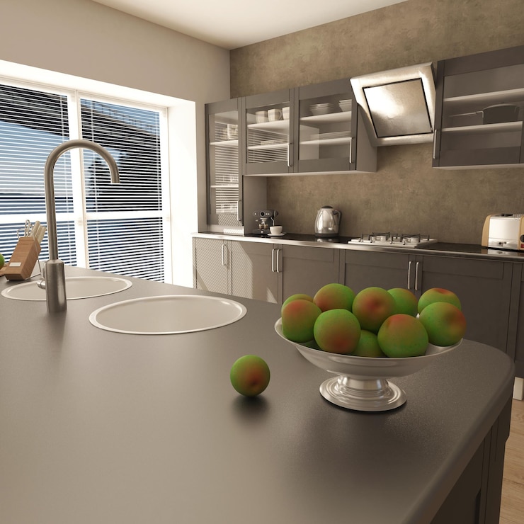 Использовался единый материал – ЛДСП с текстурой мрамора – для изготовления фартука и столешницы. По словам дизайнера, это надежное и доступное решение. Поверхности обладают термостойкостью и легко очищаются, что обеспечивает простоту ухода.