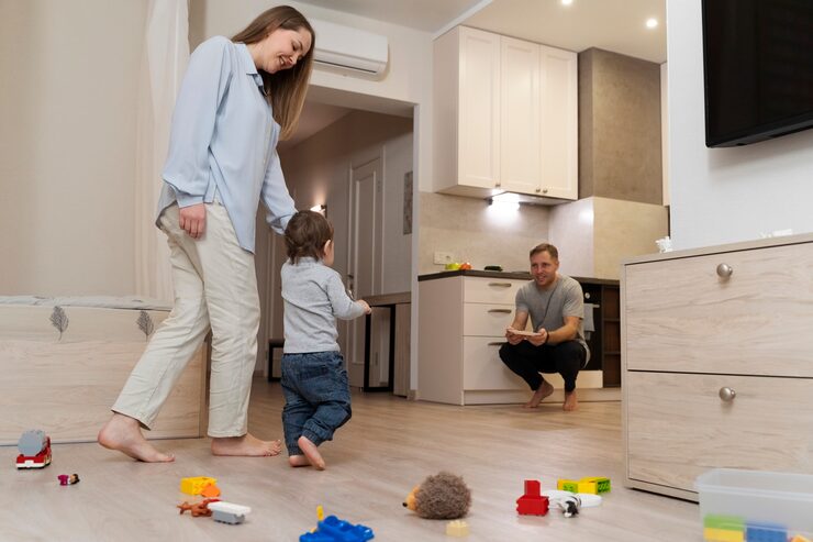 Дизайнер Влада Петерсон разработала эффектный и насыщенный интерьер для семьи, воспитывающей двоих детей. Пространство было организовано весьма оригинально: гостиная и спальня разделены перегородкой, позволяющей использовать эту зону как общее помещение в течение дня и изолировать спальню в ночное время. Заказчица изначально хотела, чтобы детские комнаты были отдельными, а эту часть квартиры выделили для себя и гостей. И это желание было реализовано.