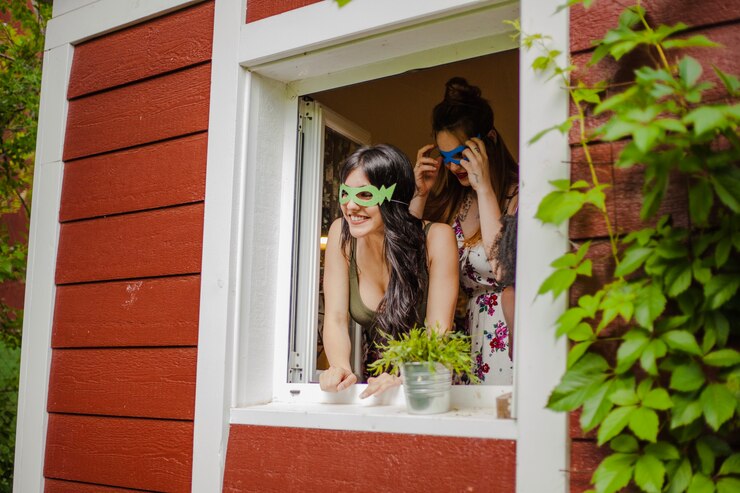 На втором этаже дома находится спальня, оформленная в теплой цветовой гамме. К спальне примыкает балкон, наполняющий комнату дневным светом. Пол выложен персиковой плиткой, которая гармонично сочетается с текстилем аналогичного оттенка (сизалевый ковер, хлопковые подушки и пледы).