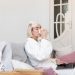 Место для работы и кашпо стоят на изящных белых металлических ножках. Столешница стола — консоли из дымчатого стекла, отражающего небо. Уют создает вязаный пуфик ручной работы в серых тонах с деревянными ножками, которые подходят к напольному покрытию.