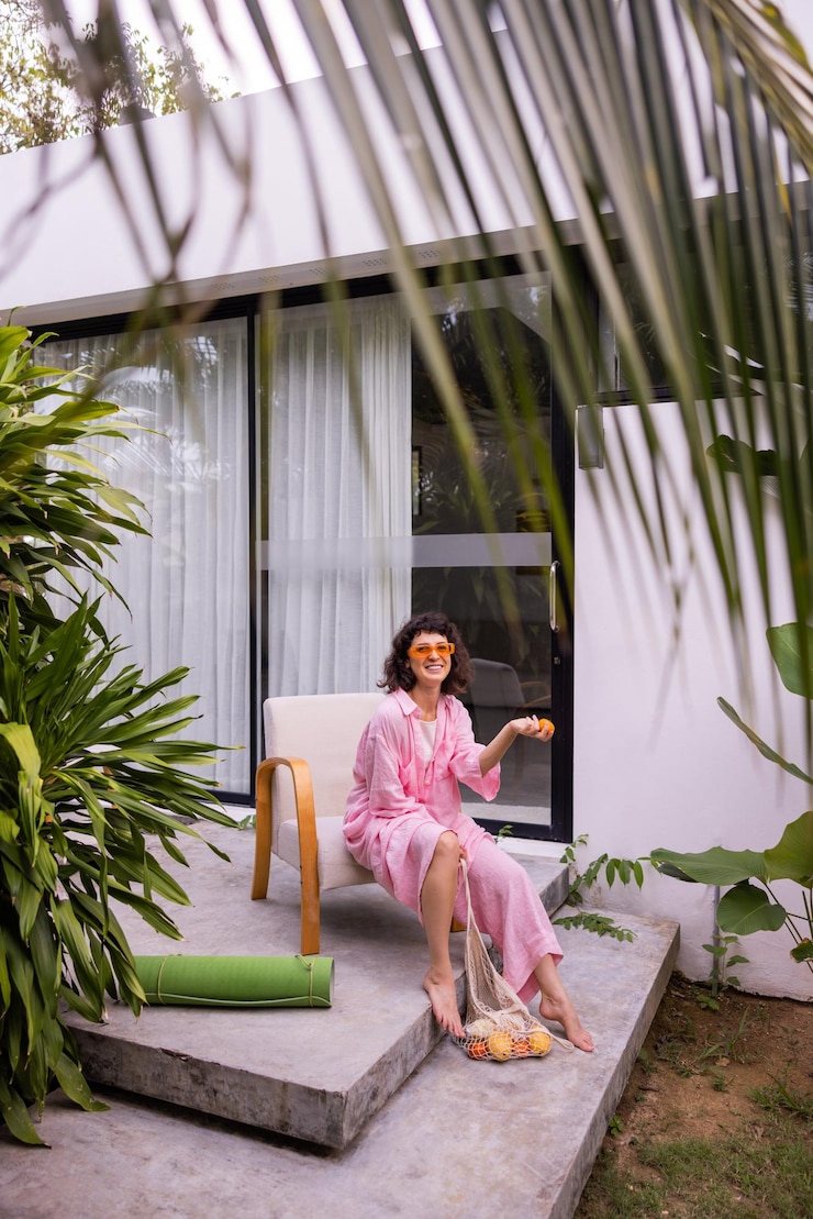 Дизайн санузла дизайнер создал под впечатлением от поездки на остров Санторини. Наталья сделала стены из объемной штукатурки-мазанки своими руками. Для потолка собирали прутья, шкурили их и красили. Керамическую плитку и зеркало-окно привезли из Франции.