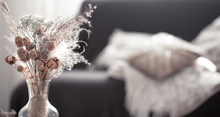Небольшое количество живых цветов смягчает мрачную цветовую гамму, характерную для мистического оформления.