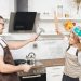 Мебель создана на заказ, но по стандартным размерам. В кухне есть высокие шкафы-пеналы с встроенным холодильником, духовым шкафом с функцией СВЧ и местом для хранения. Для декоративной составляющей кухни используются только нижние шкафчики, чтобы плавно переходить в гостиную и не перегружать визуально небольшое пространство.