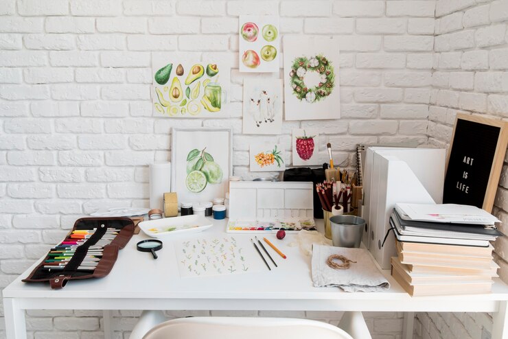 Цветовая гамма преимущественно светлая, почти белая, с небольшими вкраплениями цвета: терракотовые, песочные, древесные и соломенные оттенки. Такое решение выбрано по желанию заказчиков — максимально светлый фон с возможностью менять акценты по настроению.