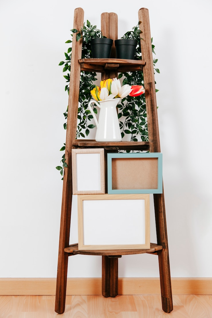 Столик на колесах — функциональное изделие. Из него получится журнальный столик или маленькая тумбочка, а также его можно использовать для завтрака в кровати. Достаточно покрасить столик в яркий оттенок.