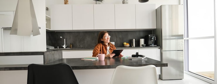 Подоконник изготовлен из искусственного камня, а его ширину расширили, чтобы создать барную стойку рядом с окном. Радиатор отопления был сдвинут в сторону для обеспечения комфортного пространства для ног.