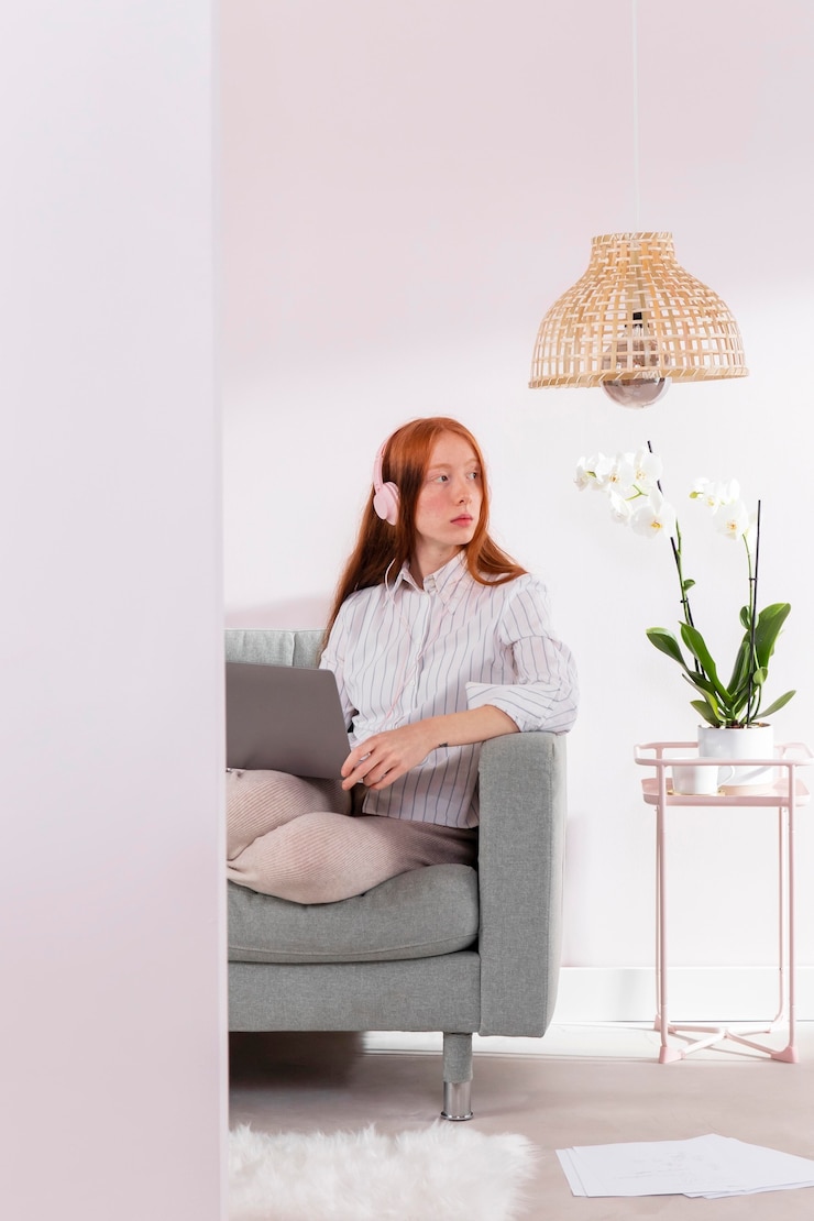 Для молодой девушки, владелицы шоурума одежды, Дэйси Аушева разработала дизайн-проект студии площадью 34 квадратных метра. Заказчица хотела создать светлое и просторное помещение для отдыха и редких встреч с друзьями. Ключевыми требованиями были наличие отдельной гардеробной и выделенная зона для сна. Чтобы максимально использовать пространство, спальня отделена шторой, предназначенной для использования во время приема гостей. В качестве вдохновения при выборе стиля был выбран парижский стиль, отличающийся легкостью и обилием декоративных элементов.