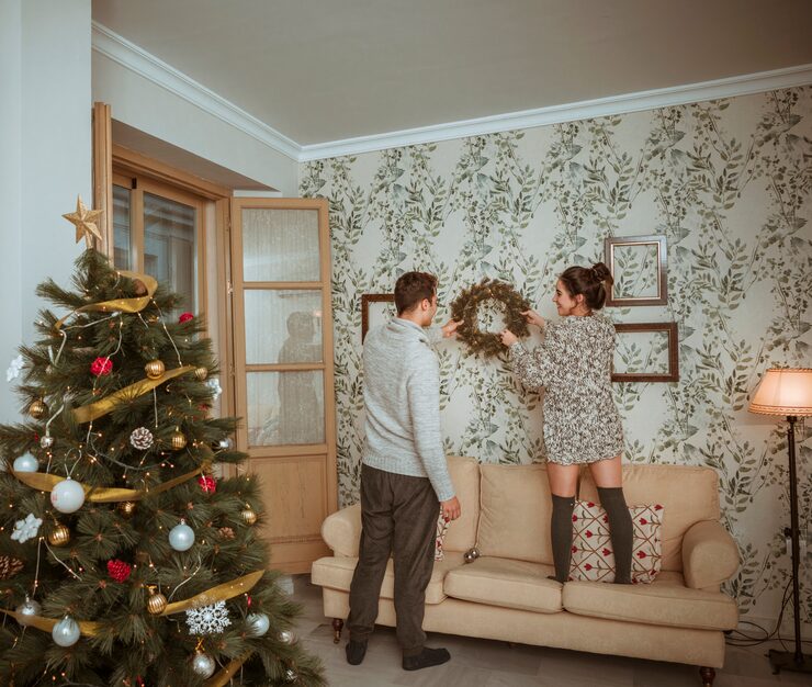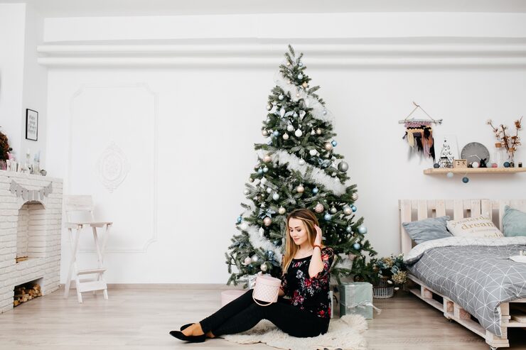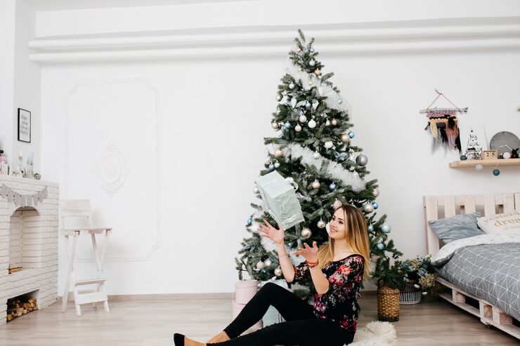 Чтобы добавить уюта, можно использовать плед с рождественским узором или украсить окна елочными игрушками – важно, чтобы эти детали гармонично дополняли новогодний декор помещения.