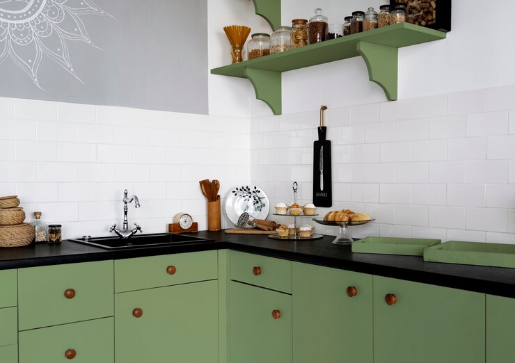 При подборе мебели, вне зависимости от выбранного стиля, необходимо учитывать ее вместительность и функциональность гарнитуре ЭРНИКА предусмотрены два типа полок для специй: открытые полки разной глубины, дополненные балюстрадой, и полки с маленькими ящичками.