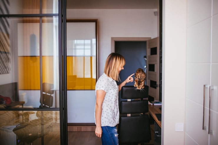 В прихожей располагается часть изображения, выполненного на стеклянных перегородках. Рисунок нанесен на стекло методом пескоструйной обработки. Стеклянные перегородки оснащены подсветкой, способной изменять цвет, что позволяет создавать различную атмосферу и адаптировать интерьер к разным потребностям.