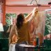 Дизайнер изготовила обеденный стол собственными руками для данного проекта. У стола бетонное основание и деревянная столешница, обработанная маслом и воском.