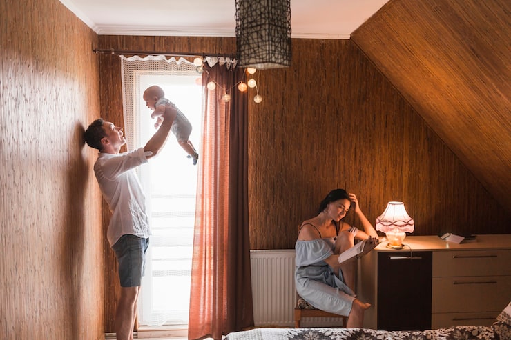 Дизайнер Наталья Березина обустроила уютный загородный дом для семьи с маленькой дочкой. Муж занимается инвестициями, а жена работает репетитором на дому. Главным запросом было создание светлой и чистой кухни-гостиной в сдержанных тонах с элементами отделки под дерево. В других помещениях заказчики были готовы к деликатному введению цвета.