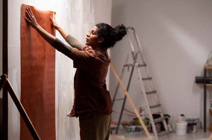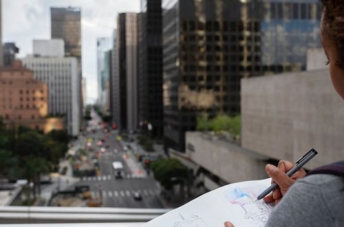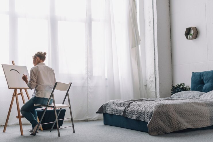 Интерьер, оформленный в декоративных целях, отражает привязанность владелицы к авангардистскому искусству. В нём нашли место красочные подушки с абстрактными мотивами и постеры в чёрных рамах, которые придают пространству графический характер.