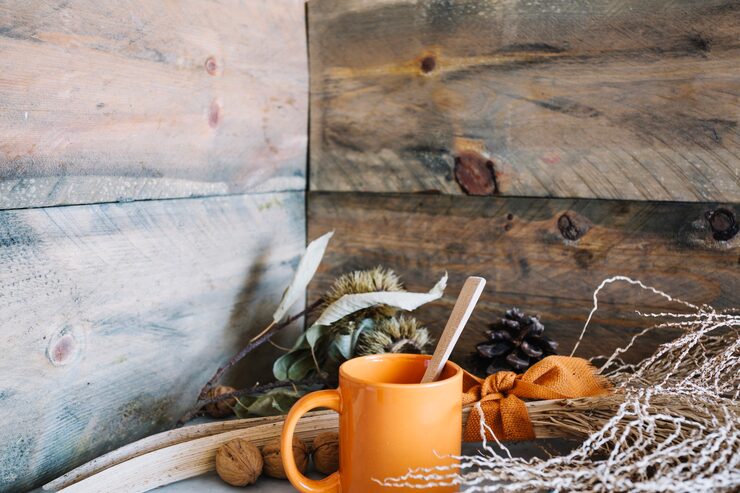 Природные цвета, характерные для осени — цвет ветвей вербы, дождевых облаков, тополиной коры, хаки и мышиный — гармонично смотрятся с деревом любой породы. Особенно удачное сочетание получается с рыжевато-желтыми древесными оттенками, такими как бук, орех, акация, светлый дуб, береза или ольха. Также нежные оттенки серого прекрасно дополняют теплые тона — карамель, молочно-белый, кремовый и кофе с молоком.