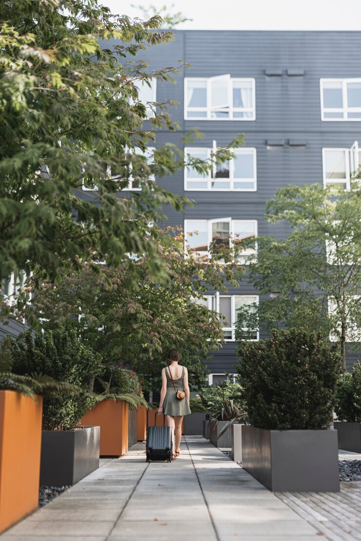 Эта квартира, спроектированная дизайнером Анастасией Киселевой, расположена на набережной реки Фонтанки в одном из зданий Мещанского общества, известных также как дома-пропилеи. Здание, возведенное в 1910 году в стиле модерн, было спроектировано архитектором Н. К. Прянишниковым. В 2001 году дом был внесен в реестр объектов культурного наследия.