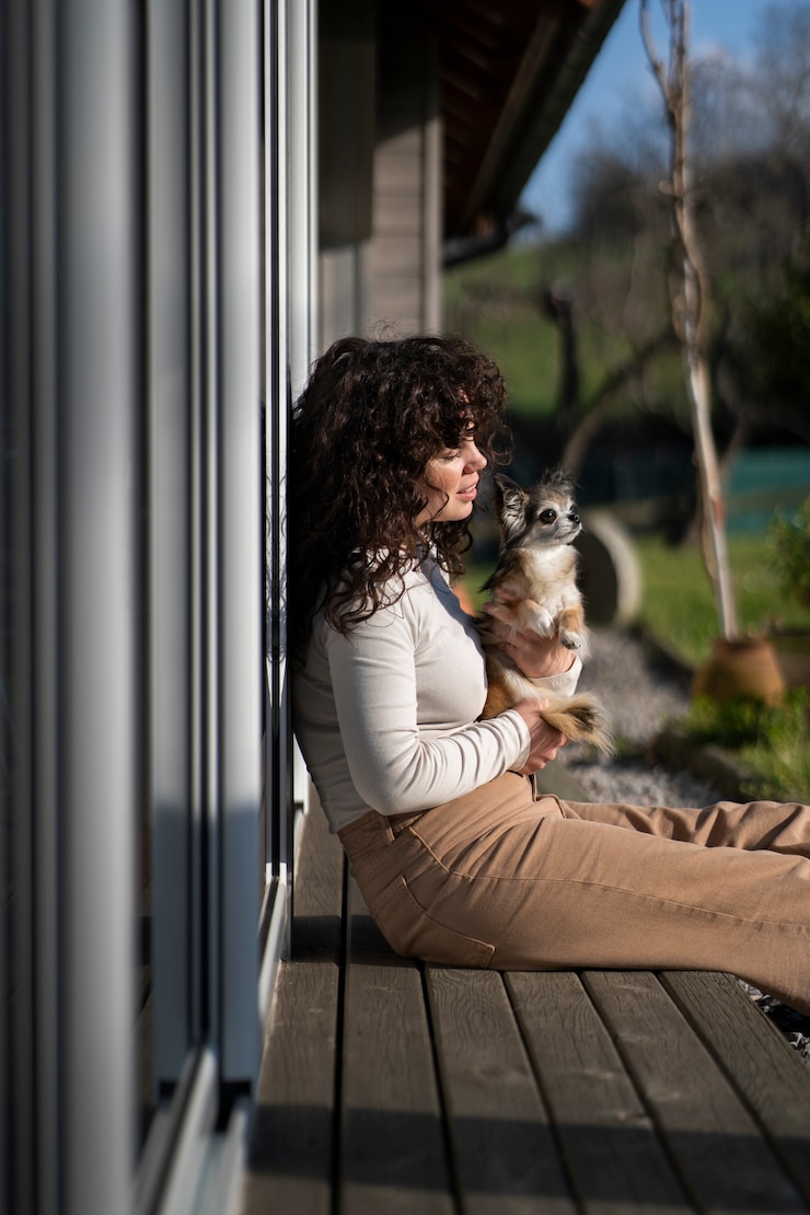 Внешний вид здания отличается оригинальностью и дополнен террасой, обшитой декингом, которая плавно переходит то в участки с высокой травой и песком, то в небольшой мостик, пересекающий бассейн. На одной из частей террасы установлено навес из брезента, а в углублении подвешен гамак.
