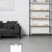 Стеллаж изготовлен из гипсокартона и жалюзийных дверей из Леруа, покрытие – белый масло Osmo, такое же, как у кухни.