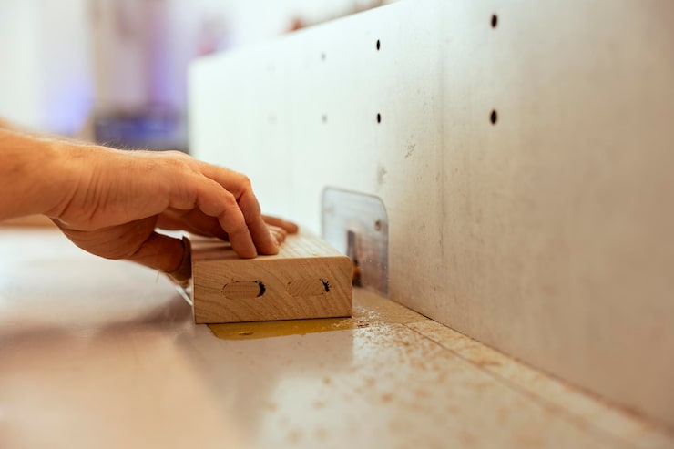- Для фиксации приклейте малярный скотч крест-накрест на соседние плитки. Если плитка имеет значительный вес, подложите снизу деревянный брусок, прижав его к стене;