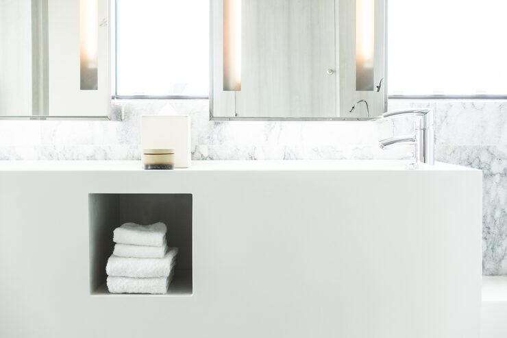 Отсутствие акцентов и текстур, а не сам белый цвет, является причиной проблемы. Однотонная белая ванная комната может выглядеть изысканно, если в ней присутствует разнообразие фактур: сочетание глянцевой и матовой поверхности, использование мрамора и дерева, чередование холодной плитки и теплого текстиля.