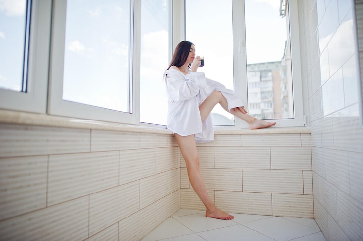 Выход на балкон через панорамную дверь – нетипичное решение для ванных комнат, которое мгновенно придает интерьеру неповторимый характер. Балкон создает ощущение комфорта и воздушности, преобразуя санузел в полноценное и располагающее к отдыху пространство.