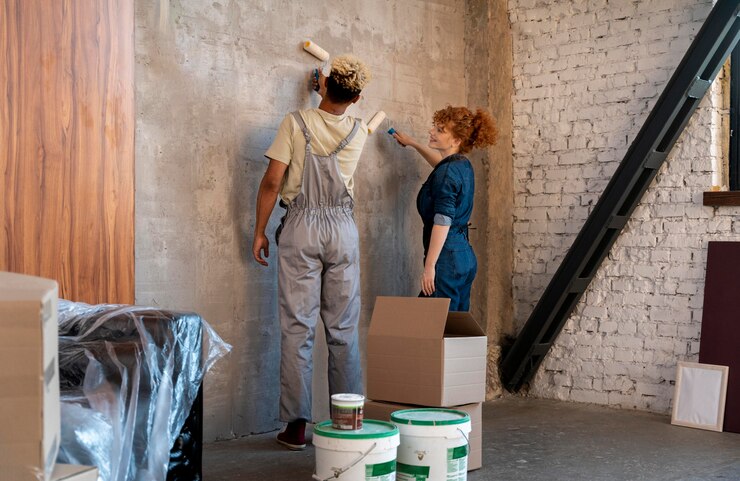 Для отделки стен был использован архитектурный состав Mons, который придает помещению изысканный вид, отличающийся от грубости штукатурки. Дизайнер стремилась избежать излишней декоративности стен с помощью лепнины или обоев, поскольку обычная краска показалась бы недостаточно выразительной. В качестве напольного покрытия выбрали кварцвиниловую плитку, поскольку квартира расположена на первом этаже, а под ней проходят коммуникационные трубы, что предполагает использование материала, подходящего для систем отопления.