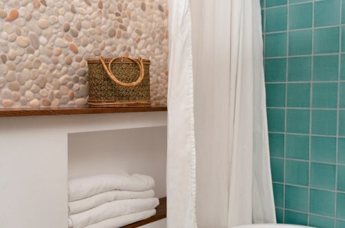 Дизайнер Лана Александрова обустроила двухкомнатную квартиру в доме старой постройки для матери. Ванная комната была совмещённой, но слишком маленькой и невзрачной — с обыкновенной белой квадратной плиткой. Задача заключалась в перемещении газового котла, который портил внешний вид.