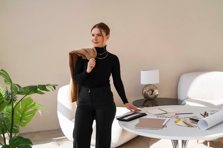 Этот интерьер бесспорно относится к классике, но дизайнер характеризует его как элегантный стиль, предназначенный для деловых женщин.