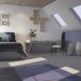 Сразу заметно большое количество света в помещении. Эффект создаётся за счёт светлого цветового фона, который усиливает ощущение солнечного дня внутри комнаты. Светлые тона используются везде.