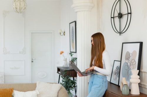 Юлия для отделки стен выбрала различные тона серого и применяла разные декоративные приемы. Часть стен она окрасила в темный серый, часть оштукатурила цементной смесью с нежной фактурой, а стену возле дивана оформила… с эффектом мазанки — фактурные поверхности сСоздают эффектный вид и придают помещению уникальный шарм.