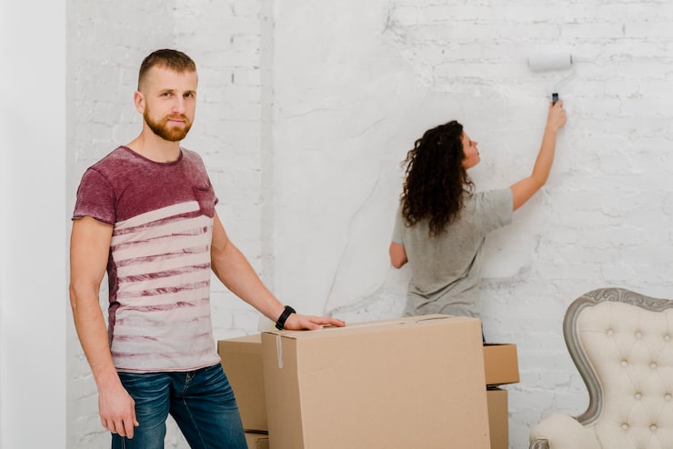 Чтобы акцентировать брутальный характер интерьера, стены в прихожей окрасили в насыщенный серый цвет. Входная дверь и дверь в санузел оформлены сложным сине-зеленым оттенком. Вместо пуфика в качестве альтернативы используются изготовленные на заказ ящики для гранат. Дверь в гардеробную выполнена в амбарном стиле, что обеспечивает не только удобство, но и экономию пространства. В гардеробной предусмотрено хранение всех вещей и одежды.