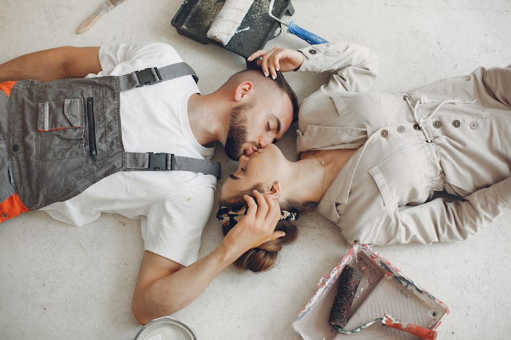 На полу всей квартиры уложена плитка, стилизованная под старинные доски, под ней проложен теплый пол. Стену в спальне облицевали гипсовыми панелями, которые Анна декорировала, создавая эффект бетона с помощью краски. Стена, расположенная напротив окна, украшена состаренным зеркалом, которое отражает свет и придает комнате ощущение простора. Кровать изготовлена из цельного дерева и оборудована выдвижными ящиками для хранения вещей.