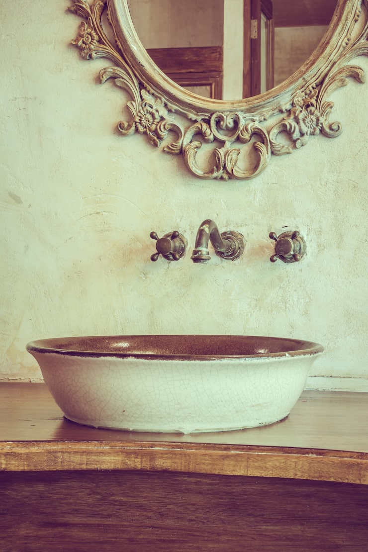 Вторая ванная комната оформлена в другом стиле: она максимально сохранила черты классики и поддерживает атмосферу дома, существовавшего до революции. Здесь расположена чугунная ванна на изогнутых ножках, которая стала ключевым элементом интерьера. Она сочетается с раковиной, выполненной в аналогичном стиле, и большим зеркалом с подсветкой.