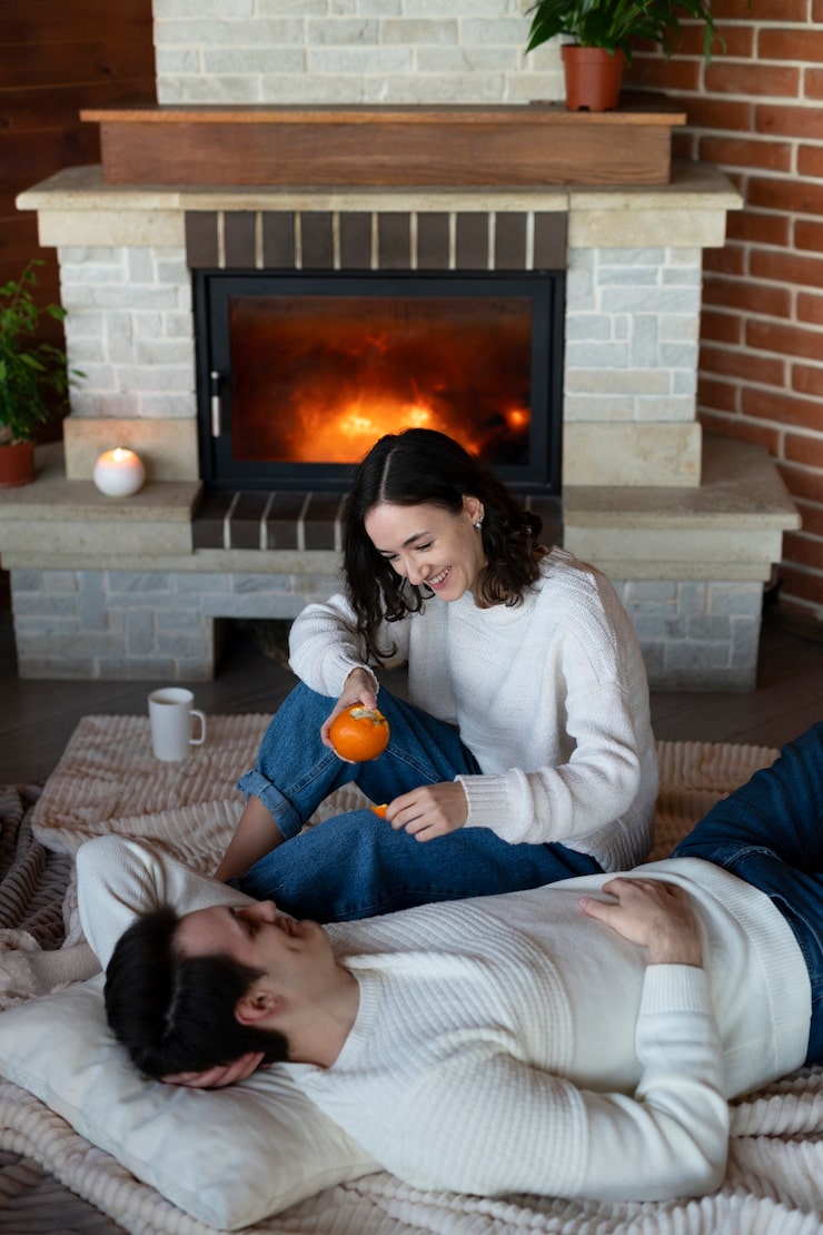 Гостиная предлагает зону отдыха и просмотра телевизора, включающую два дивана, разработанные итальянским дизайнером Джозеппе Иаспарра, и журнальные столики с мраморными столешницами. На полу размещен уникальный ковер, созданный по дизайну Ирины Татарниковой, с изображением русских букв. Каминная зона обустроена с использованием двух кресел, расположенных перед очагом. Панорамный камин, облицованный мрамором Arabescato Orobico, выбор которого был осуществлен совместно с заказчиками, является выразительным элементом, при этом не нарушает легкости и воздушности интерьера.