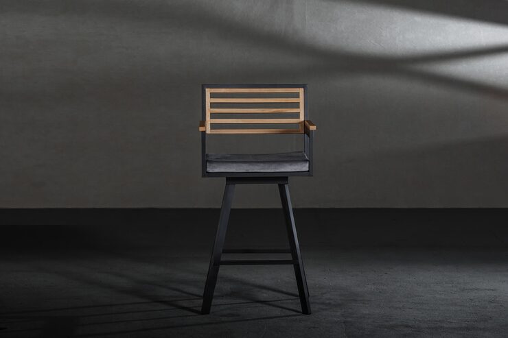 Сайпл MR-28Этот высокий барный табурет отличается велюровой обивкой сиденья, черным металлическим каркасом и серой отделкой. Высота сиденья составляет 74 см