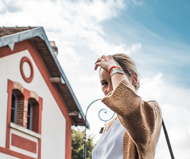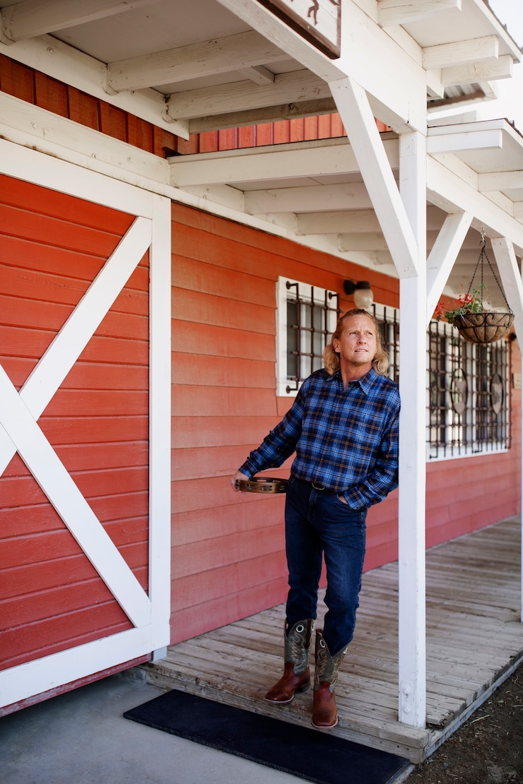 Перед входом находится веранда с деревянным настилом, где летом стоит обеденный стол.