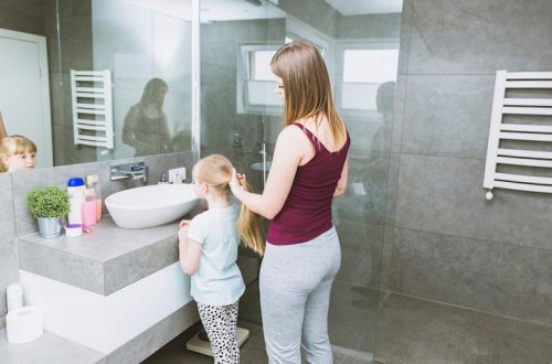 Ванная комната не удивляет дизайнерскими решениями. Просторное помещение содержит все необходимые элементы для водных процедур и гигиены. Традиционная отделка керамической плиткой, имитирующей мрамор, сочетается с сантехникой необычных форм.